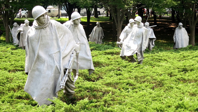 Part of the Korean War memorial is a series of sculptures of a platoon on patrol. While I was exploring the area I came across an old oriental lady who looked like she was praying, and seemed very emotional. It dawned on me that she very well have had first hand knowledge of the war. It made the scene very touching.